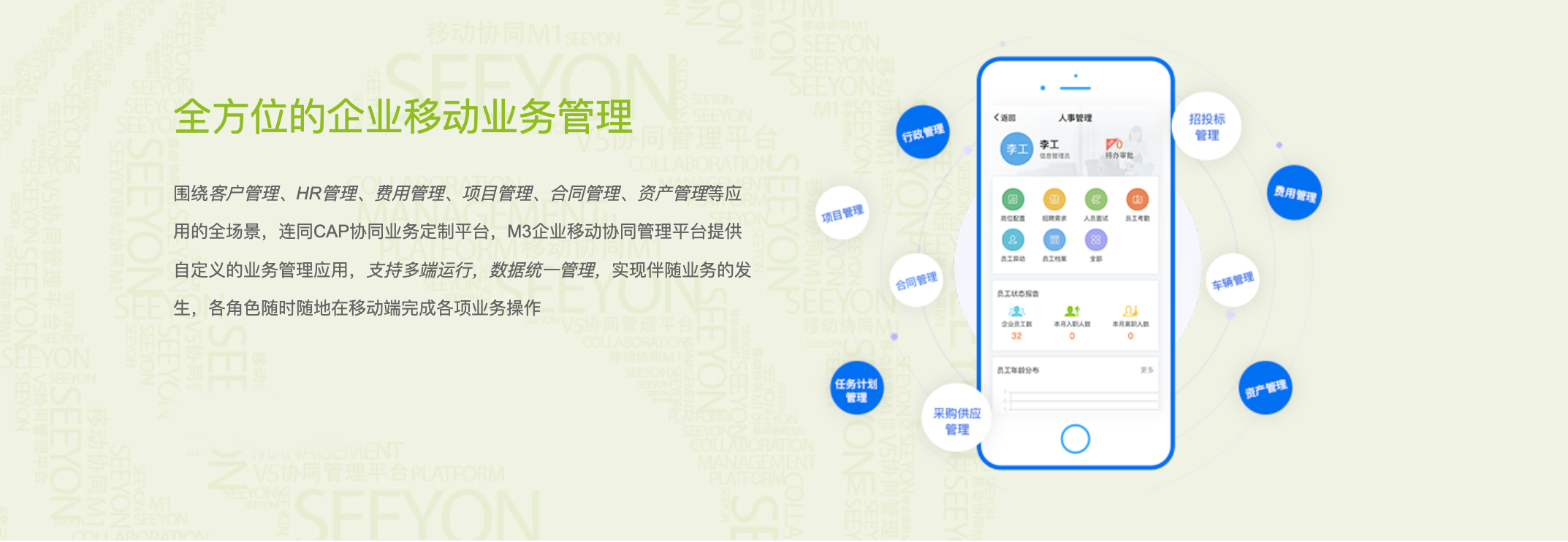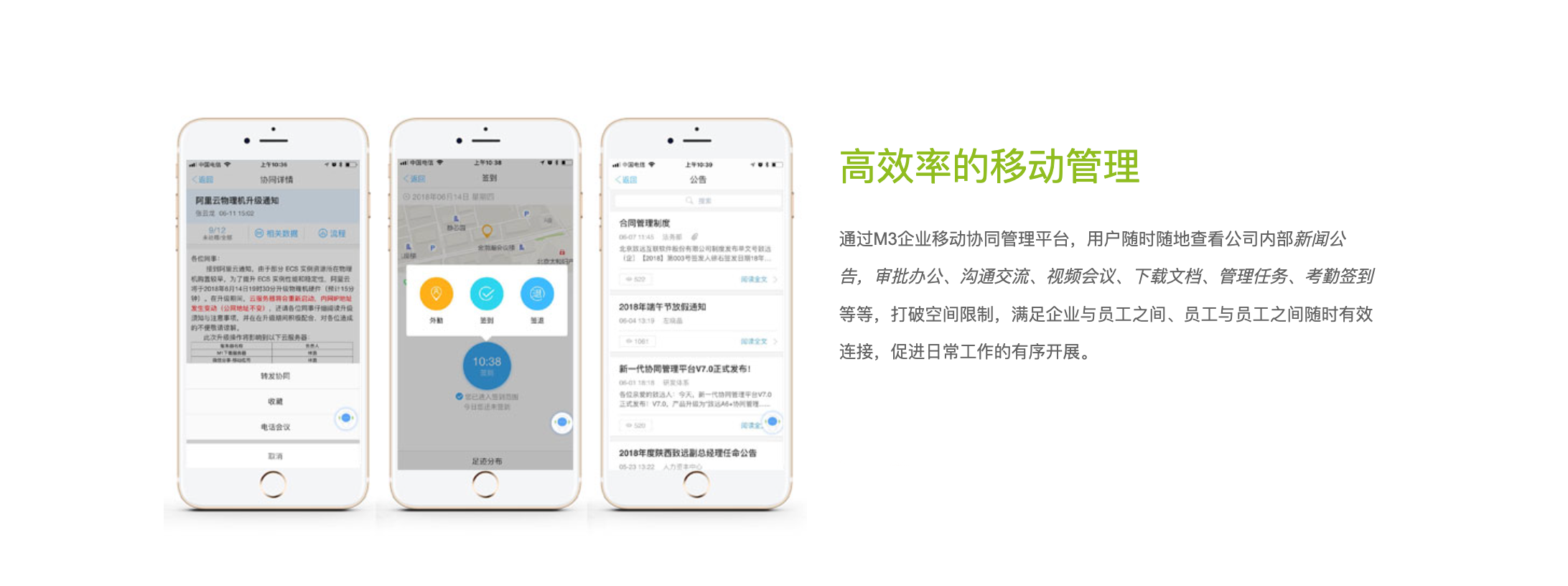 M3企業(yè)移動(dòng)協(xié)同管理平臺(tái)充分考慮企業(yè)移動(dòng)安全保障,完美融合致遠(yuǎn)互聯(lián)業(yè)務(wù),依托強(qiáng)大的移動(dòng)開(kāi)發(fā)框架和開(kāi)發(fā)管理平臺(tái),提供便捷的集成多系統(tǒng)應(yīng)用能力, 構(gòu)建以人為中心的智能化移動(dòng)應(yīng)用場(chǎng)景,促進(jìn)人員工作積極性和創(chuàng)造力,提升企業(yè)效率和效能,是為企業(yè)量身定制的移動(dòng)智慧協(xié)同平臺(tái)。